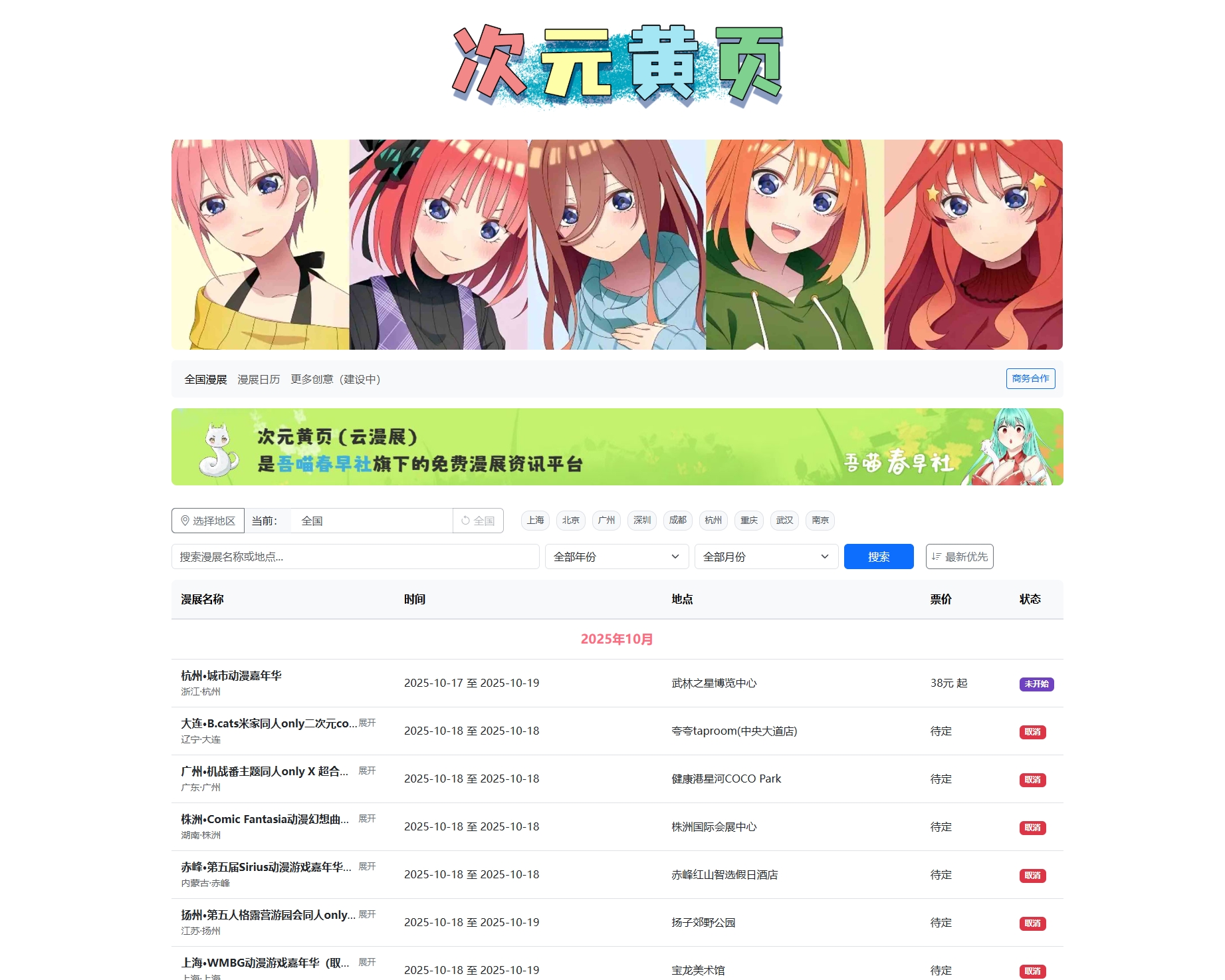 初代云漫展-次元黄页主页[ACGN漫展网]上线