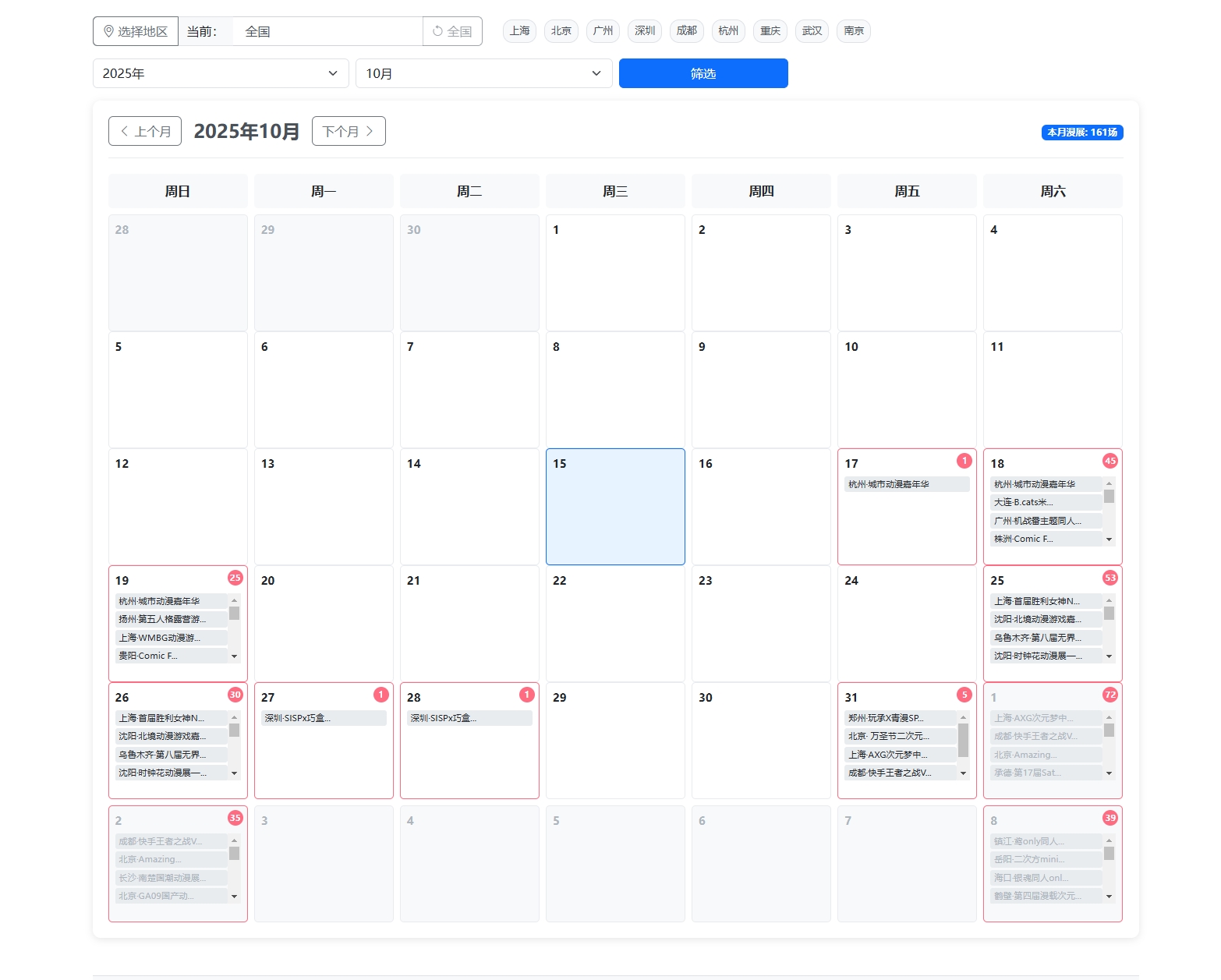 新增了年度、月度以及每个周的漫展数量,方便查看