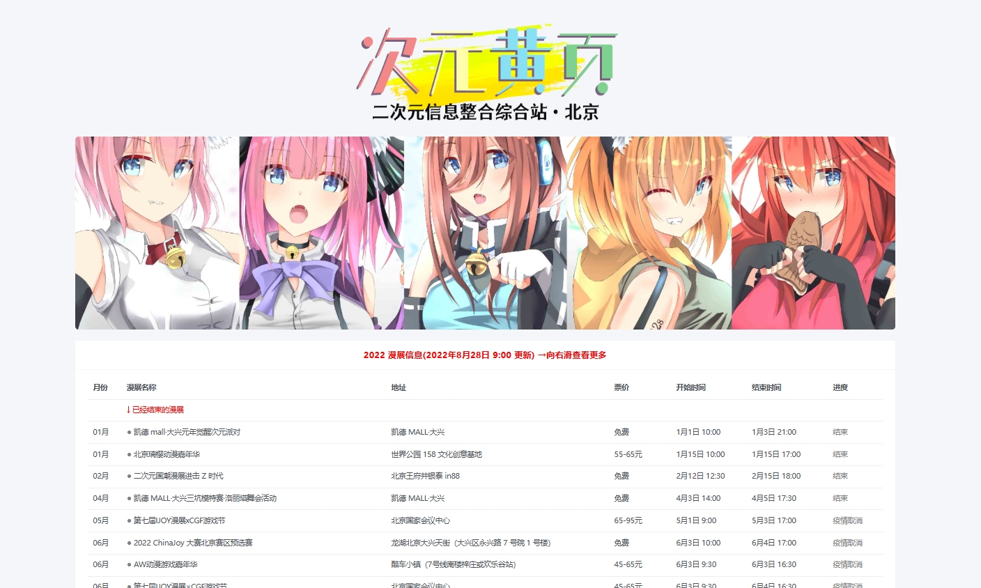 2022年底了,对于历史漫展页"2022年漫展"已经可以浏览