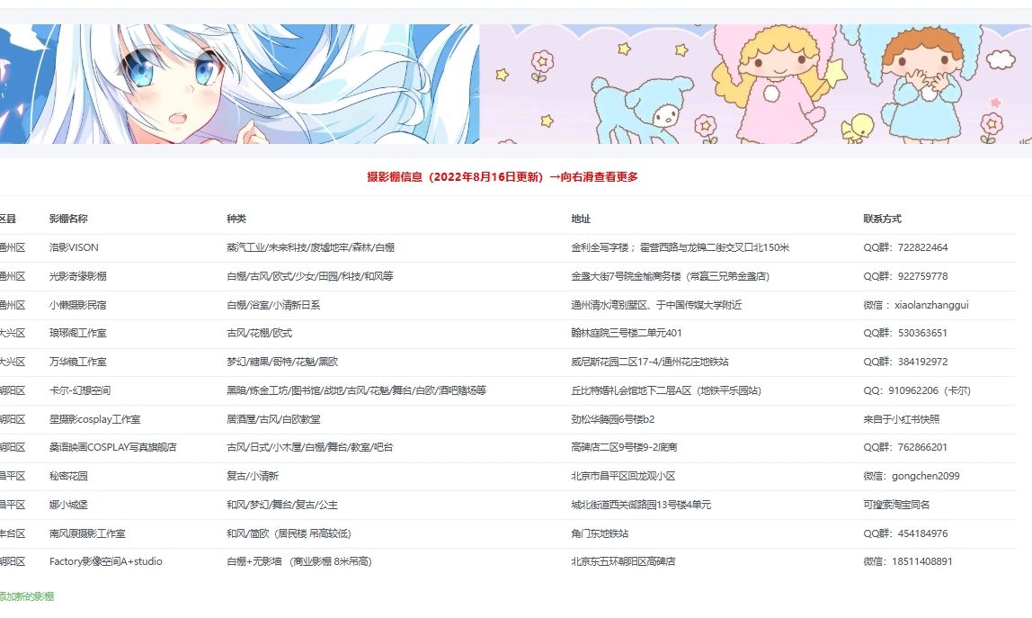 增加了自助式添加漫展、团片以及影棚的信息提交入口