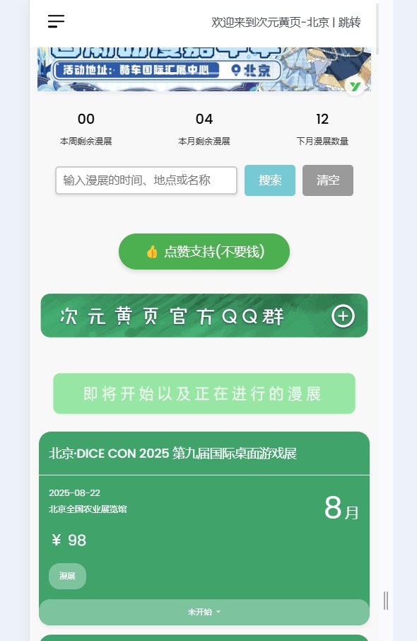 从支持京津冀三区域漫展资讯变为支持全国漫展信息查询