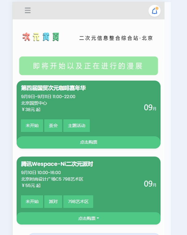 新增了票务系统,现在可以在次元黄页购买合作活动门票了