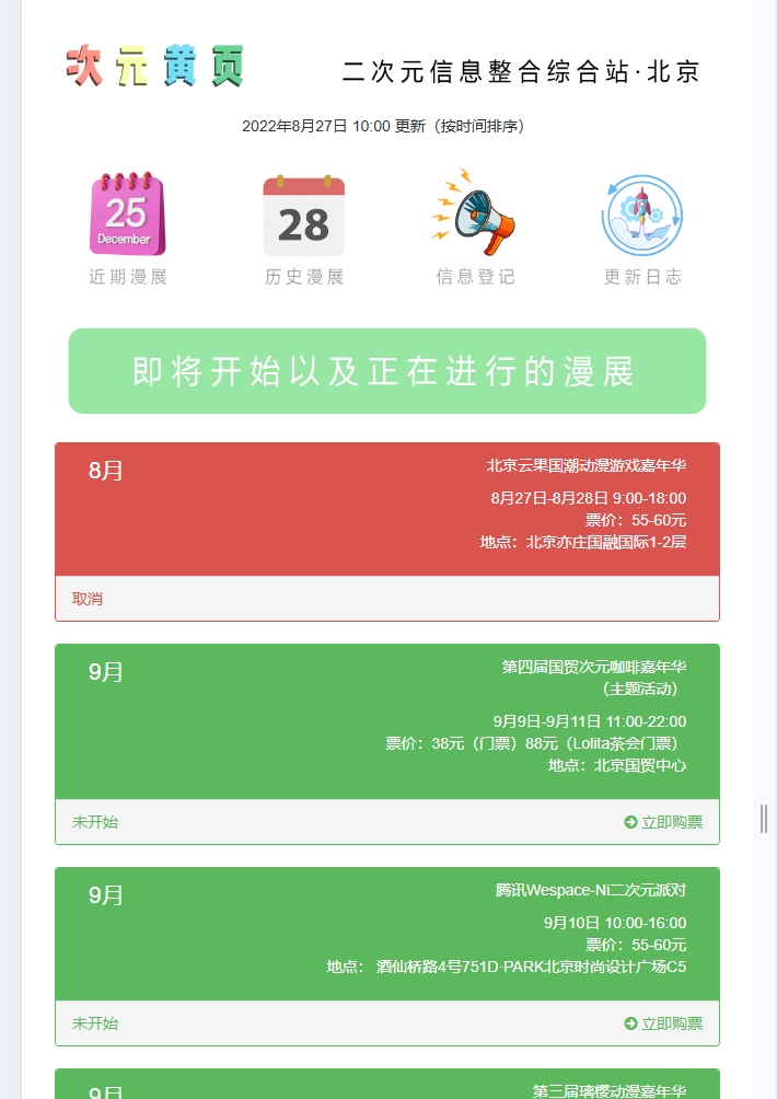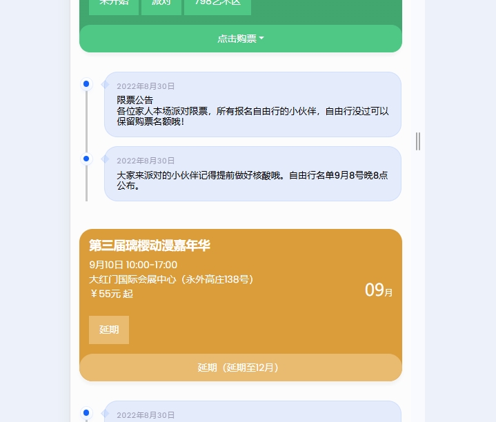 添加了漫展的状态信息展示,可展示历史漫展以及漫展是否延期、改期或取消